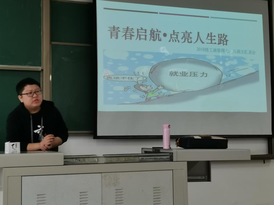 为进一步引导同学们树立正确的择业观与就业观,认清就业形势、把握就业机会,帮助2021届毕业生了解日后的发展方向,树立正确的择业观、就业观,2018级工商管理7班开展了“青春启航·点亮人生路”就业主题班会。