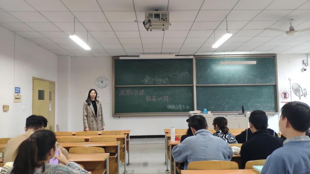 班会中,团支书跟同学们重点强调了职业生涯规划的重要性,希望同学们写下自己这个学期的近期目标及毕业时的远期目标。团支书积极引导学生对接下来的学校生活充满期望,对未来的生活充满希望。团支书给同学强调书写的要求及内容,希望同学们认真思考,接下来对自己严格要求,严以律己,度过一个充实、有希望的大学生活。