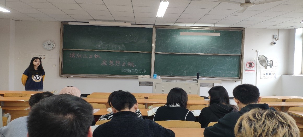 为进一步加强学风建设,在即将面临的考研和工作上,帮助大四同学们掌握更好的备考方法和求职技巧。2018级工商管理5班于10月26日上午10:30在4101教室举行了“扬就业之帆,启梦想之航”主题班会。工商管理5班全体同学和辅导员蒋开蓉老师参加了此次班会。
