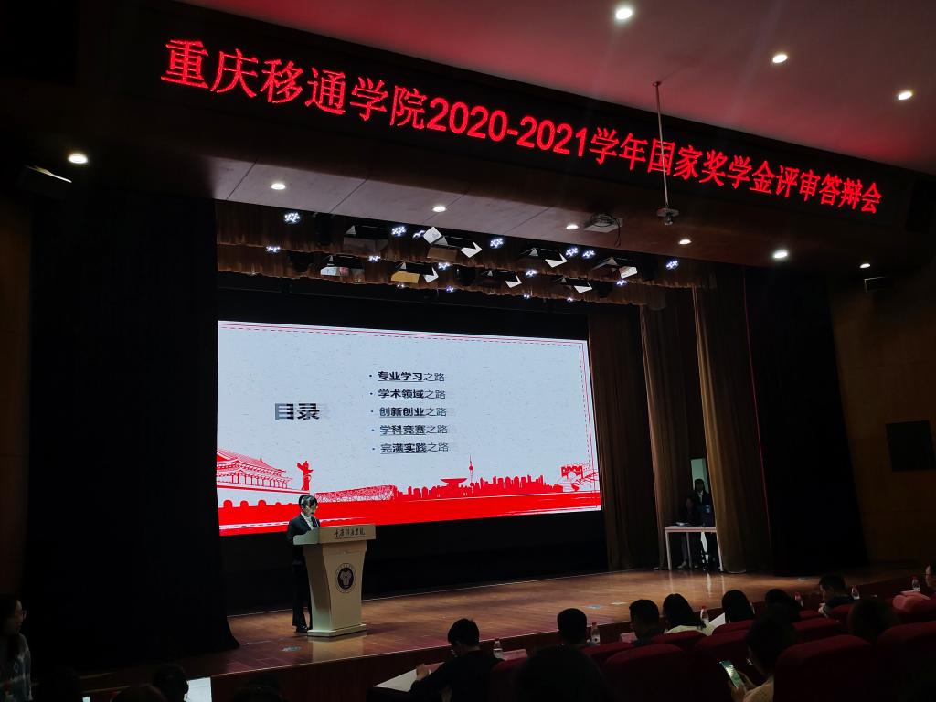 (大屏幕):连续三年三创赛都拿下了省级部奖项,获得了由北京大学主办的市场调研分析大赛重庆市二等奖等等,实现了A、B、C类学科竞赛大满贯,A类竞赛获得市级奖项3项,B类竞赛获得市级奖项1项,C类竞赛获得国家级奖项2项以及其他市级及以上奖项共计13余项;在校期间获得了国家励志奖学金,移通优秀学生奖学金一等奖(3次),校“三好学生”,校“创新能力提升先进个人”,移通之星-学习标杆等校级及以上奖项40余项;以第一作者身份在国家级期刊《科学与生活》发表论文;创办并担任法人的创业项目“蜂蜜之家”已入驻学校孵化基地。