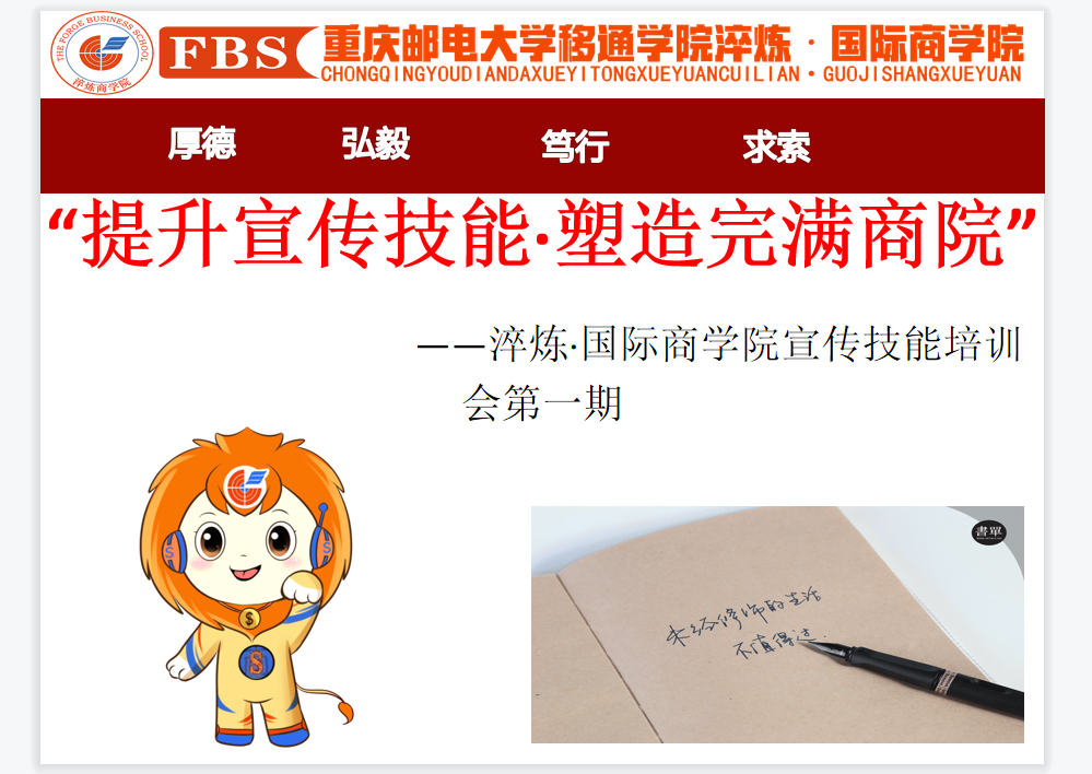 一个优秀的团队,不仅仅需要一个优秀的领导者,更需一群有素质有能力的同学团结协作、共同前进。通过此次的宣传技能培训,相信同学们对我院的宣传工作有了更深一步的了解,并真正学习到了相关的宣传知识,今后能以更加积极热情的心态面对工作,更有凝聚力和向心力的建设完满商院。
