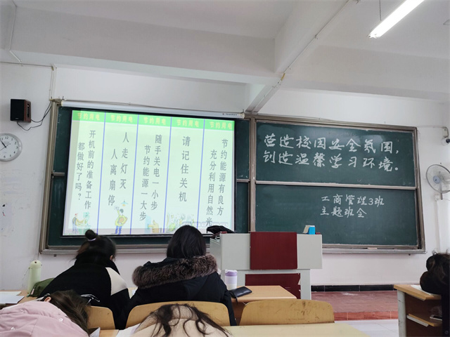 校园作为大学生学习与生活的场所,使用电器必不可少。如今正值冬季,气温低。宿舍内各种大功率电器纷纷冒头,但这却给同学们的安全增添了许多隐患。为了让同学们学会安全用电,避免许多危险事件的发生。2020级工商管理3班在2021年11月21日,五教开展关于冬季安全用电,不用大功率设备的普及班会。