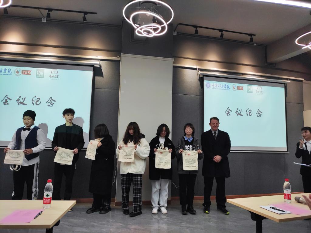 最后,外教Mike为2021级FOM本硕连读国际班新生发放了纪念品。希望本次新生见面会能帮国际商学院学子加油打气,以更加积极的态度面对的学习,以更憧憬的心态去迎接未来海外求学的时光。