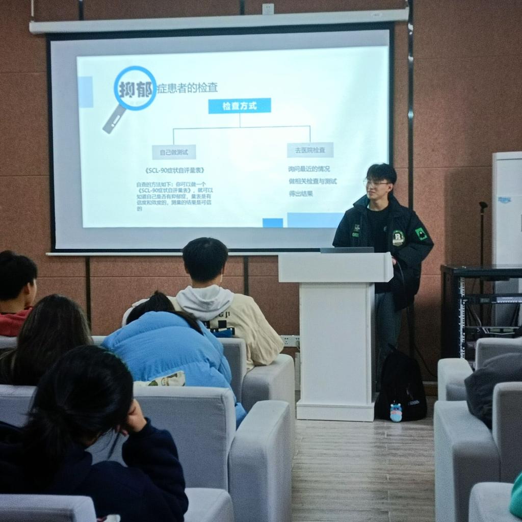 在班会尾声,李链向大家介绍了什么是抑郁症及抑郁症的主要特征。