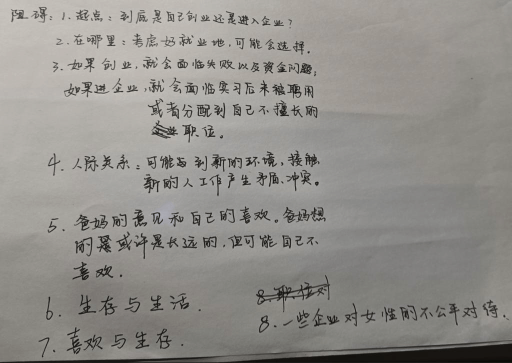 • 和导师交流中,最核心的一点:认识到可能有的障碍,做好自己职业发展的心理预期。