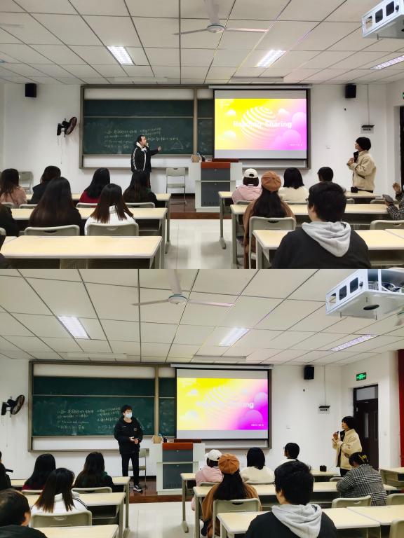 首先,李静老师抛砖引玉分享了自己的阅读经验。她认为,将书本的内容和个人的生活经历结合才会感悟真正的人生,明白人生的价值。随后李老师也向同学们推荐了自己的阅读书籍,并为同学们朗读了摘选章节。李老师的分享带动了大家,随后同学们各抒己见各自介绍了自己喜欢的书籍和电影,并分享了对于阅读的感悟和看法。