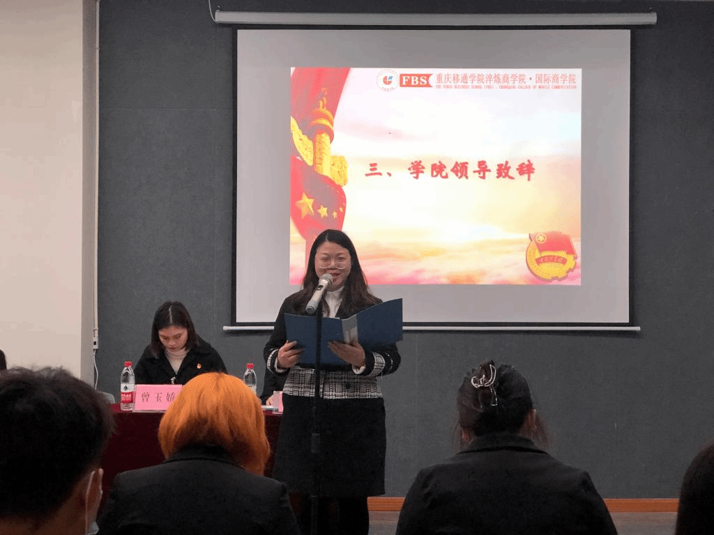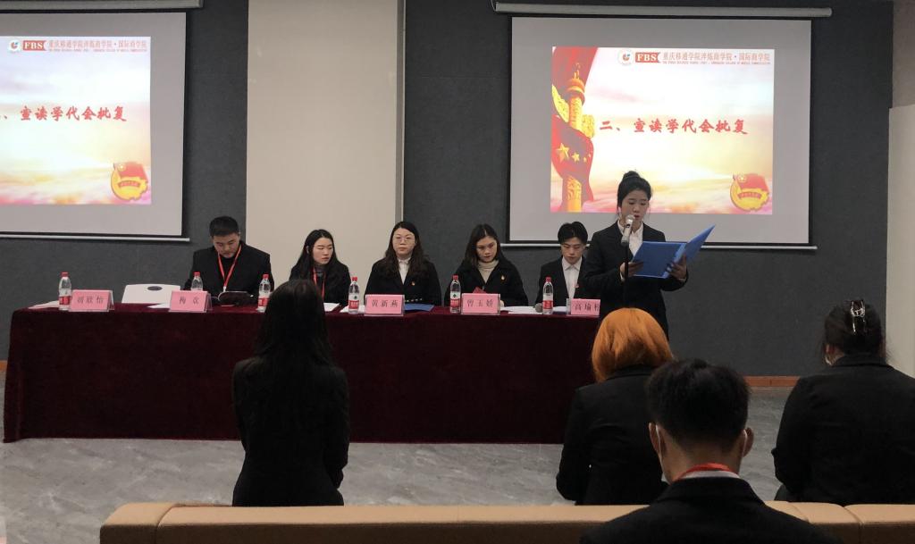 贯彻学习党的十九大精神、“七一”重要讲话和习近平新时代中国特色社会主义思想是当代青年人应尽之责,秉承校“乐教、乐学、创造、创业”校训精神,回顾过去,总结经验,展望未来,重庆移通学院淬炼·国际商学院于2021年12月10日下午14:30在南湖书院声影活动室开展第三次学生代表大会。此次大会由嘉宾淬炼·国际商学院黄新燕同志、曾玉娇同志、总计票人杨伦芳同志、总监票人梅欢同志、校学生会执行主席刘欣怡、淬炼·国际商学院第二届委员会委员王玉金以及36名学生代表出席。