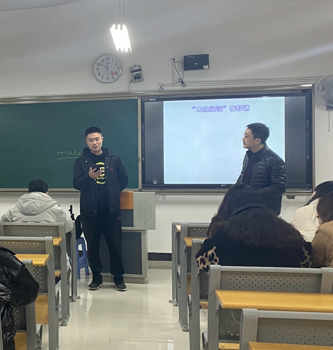 为使“大咖阅读”计划真正形成点、线、面多维合力,学生阅读成效达到“全面了解、深入思考、互促成长“的目的,12月15日晚,外国语学院税青老师与淬炼商学院·国际商学院2021级(专升本)市场营销1、2班的同学们在竹逸书院A303教室开展了以“读大咖,话营销—以格力为例”为主题的师生交流分享会。