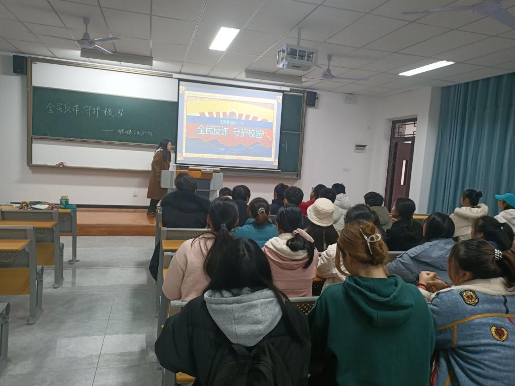 此次反诈骗宣讲主要以播放视频及演讲的形式开展。班长胡纯菲播放了“同上一节反诈课”发布活动的视频,由反诈专家为大家解读最新的诈骗案例,讲解实用的防诈措施。反诈视频详细分析了“刷单类诈骗”“贷款类诈骗”“冒充客服类诈骗”“杀猪盘诈骗”“虚假购物类诈骗”五种常见诈骗类型,告知同学们作案方法新、洗钱速度快、犯罪人员专业化等都是现代电信诈骗的显著特征。各式各样的电信诈骗可谓防不胜防,日益增长的立案数量和不断攀升的涉案金额更为同学们敲响了警钟。团支书黄鑫为班级同学演讲了一段“预防诈骗小口诀”,以朗朗上口的音韵将防诈诀窍刻入同学们的脑中,用诙谐的言语道出诈骗的罪恶。从而让同学们切实体会到在这个信息化的社会,具备一定的信息安全意识的重要性,借此来提高同学们对社会中信息推送的警惕性。这警示学生们树立正确消费观,避免过度超前消费,不要轻信“低利率”“放款快”等诱惑性字眼。