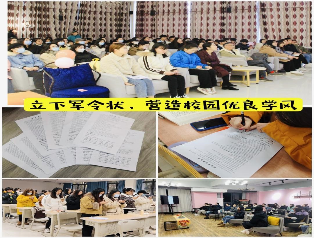 军令如山,青年似军。期考似战,诚信为剑,以斩四海八荒。临近期末,全体同学立下军令状,通过诚信考试宣誓,签订诚信应考承诺书,从此刻开始认真复习备考,以诚信考试为荣,以违纪作弊为耻,弘扬求实学风,维护知识尊严。洋洋学风荡古道,严严纪律正君心。