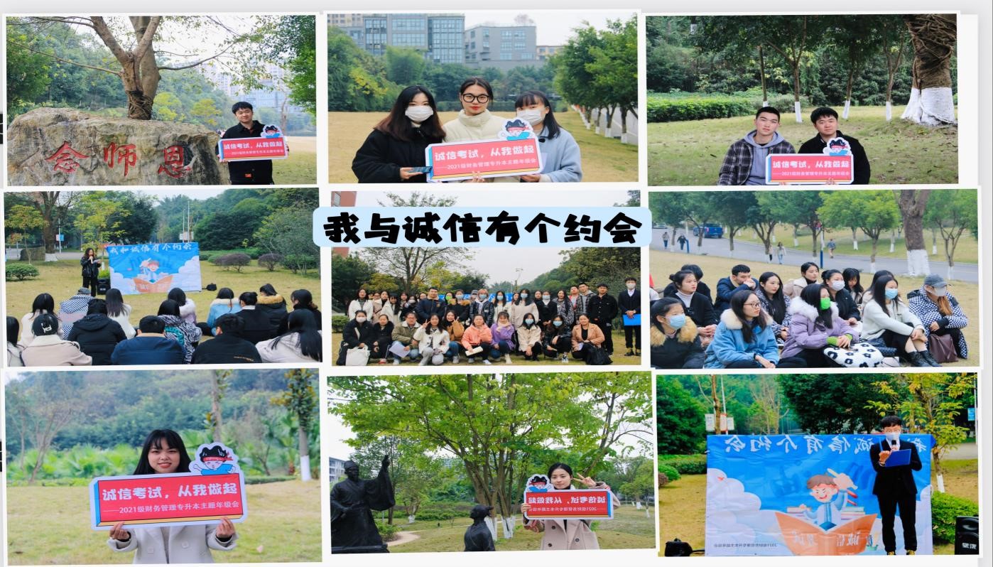 诚者,开心见诚,无所隐伏也;信者,诚实不欺,信而有征也。为引导学生清晰未来规划,明确个人志向,规划期末学习,做到诚信应考。2021级财务管理专升本1-10班采用线上与线下、主活动与子活动相结合的方式,于2021年12月15日在荷悦书院109阅览室开展以“规划青年志•诚信少年说”为主题的年级会。