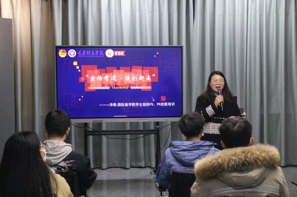 为提高学生干部基础能力,学习使用PS、PR等技术软件,寻找制作海报、视频的灵感,淬炼·国际商学院于2021年12月21日邀请到艺术传媒学院专业老师秦琦琅以线下线上同时进行的方式为学生干部开展了“宣传有道·技创新高”——淬炼·国际商学院学生组织PS、PR技能培训会暨干部培训会第四期。