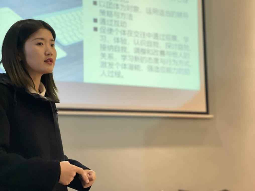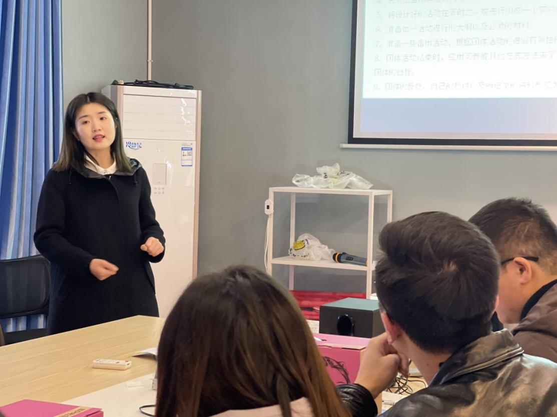 为了加强学院团体心理辅导活动的建设,加强辅导员老师们之间的团队协作能力,更好地促进今后的工作有序开展,2021年12月24日上午9:00,淬炼·国际商学院各年级辅导员老师们在5教图书馆参加“让心零距离,共筑新目标”团辅活动培训会,本次培训会由廖进辅导员作为主讲向大家介绍开展团体心理辅导活动的重要事项。
