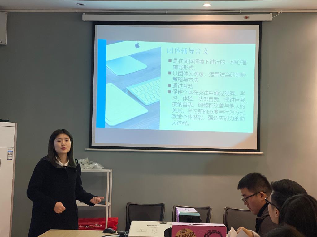 在简单的介绍了团辅活动的含义后,培训会也进入了第二个阶段。廖老师依次向大家介绍了开展团辅活动的三大步骤:设计方案、制定程序、明确基本框架。设计方案要明确适合参加本次团体活动的主要对象以及本次团体活动要达到的目标,让全体成员都要参与进来。在活动结束后进行评估,积极的改进和反思。团体心理辅导的程序是开展团辅活动的第二步,通过宣传的方式让全体师生了解团体辅导的相关事项。招募并筛选团辅成员,确定来访者需要解决的问题,确定活动的时间地点,制定纪律签定契约,保守秘密。最后一步就是制定活动的基本框架通过热身活动、主要活动、结束活动,让团体成员积极参与进来。