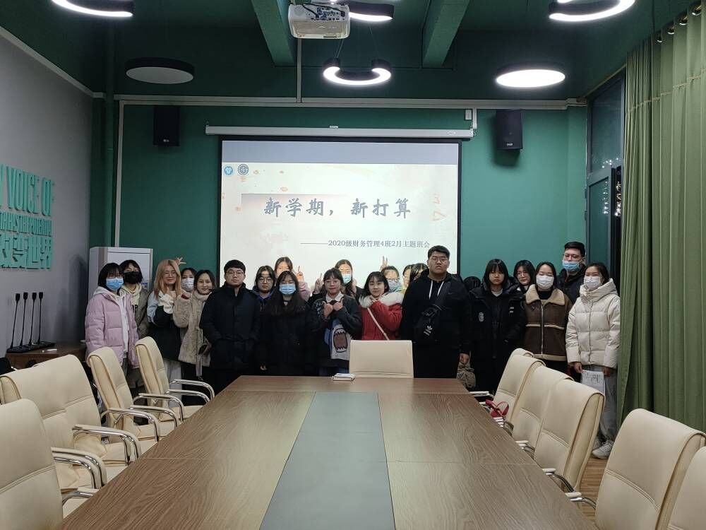 告别假期的轻松与慵懒,崭新的生活拉开帷幕,又是一段新的征程。为引导同学们树立正确的学习风气并养成良好的社交习惯,深化班干部工作重心,带领同学们积极向上,推动班级文化建设,2020级财务管理4班于2022年2月24日晚19:30在花果书院会议室开展了以“新学期·新打算”为主题的班会活动。