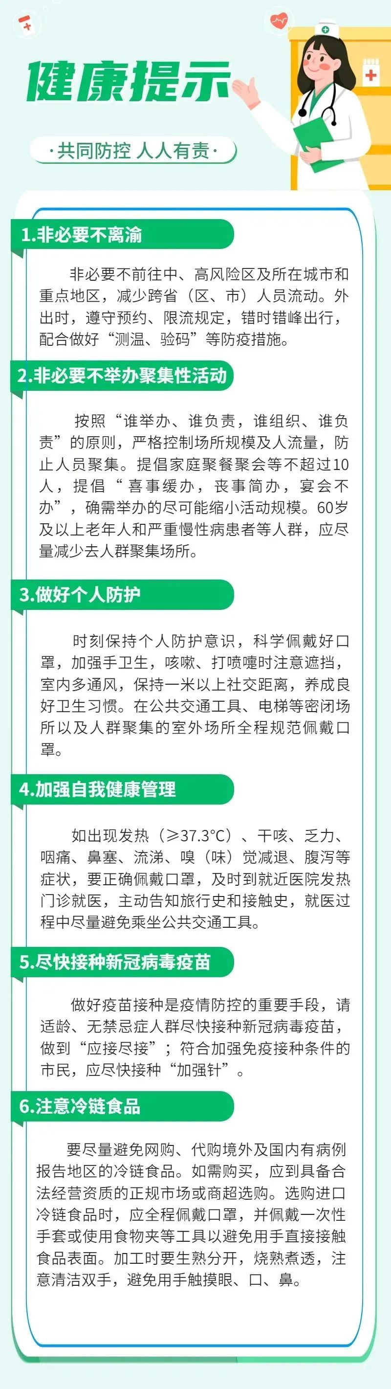 ①请时刻绷紧疫情常态化防控的弦,做好自我防护,坚持戴口罩、勤洗手。