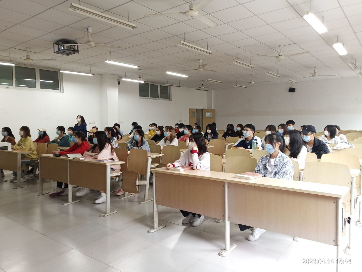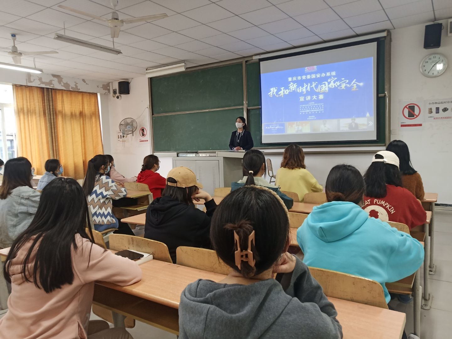 2022年4月14日淬炼·国际商学院财务管理13班、14班在重庆移通学院第五教学楼召开关于国家安全日的主题班会。辅导员陈思出席班会,全体学生参加会议。