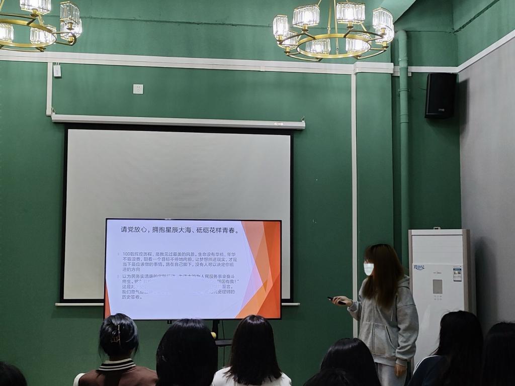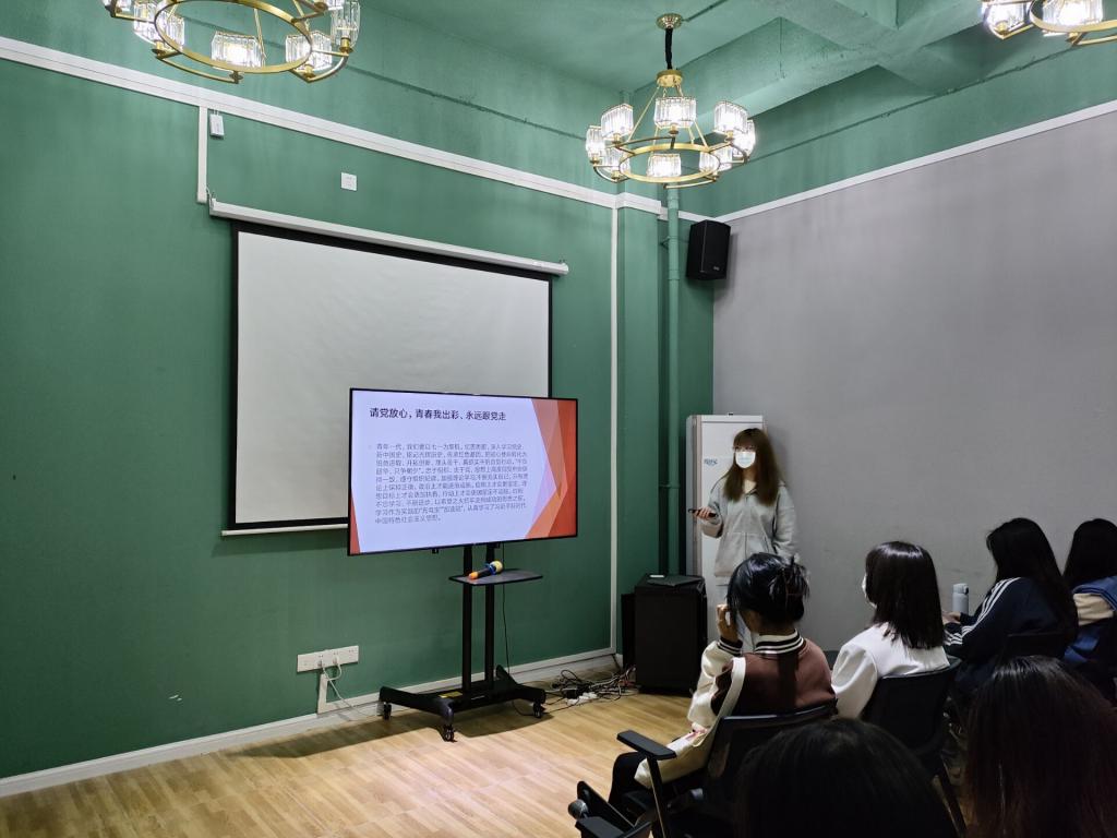 青年一代,要以七一为契机,忆苦思甜,深入学习党史、新中国史,铭记光辉历史,传承红色基因。为了更好地让同学们加强理论学习,不断充实自己,使信仰更加坚定,理想更加执着,行动更加不动摇。时刻不忘学习、不断进步,以希望之火把牢走向成功的思想之舵。2020级财务管理08团支部于2022年4月15日早上10点整,在花果演讲培训室开展了有关“请党放心,强国有我”的主题团日活动,本次活动由王雨珺同学主持开展。