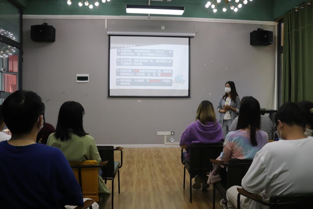 为帮助我校学子早日准备简历制作,增加更多简历方面的认知,明确大学成长方向,提升就业竞争力,由就业创业指导与服务中心主办,淬炼·国际商学院就业助理团承办,第十四期“职”规未来—“定制你的有效简历”团辅活动于2022年4月20日在花果书院多功能活动室成功举办。本次团辅活动特邀校就业创业导师库成员童学容作为本次活动的主讲老师。