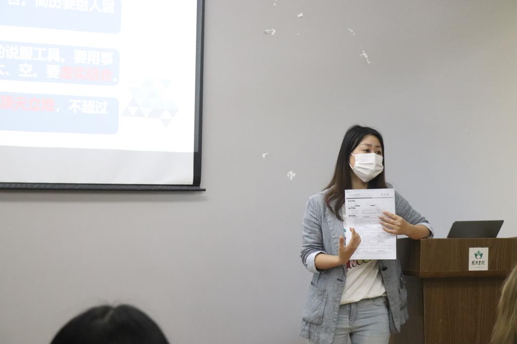 童老师在本期活动中还准备了几份来自于学长学姐的简历,讲述了这些学长学姐简历中的优缺点以供同学们参考,让同学们对于简历有更直观的认知体会。在同学们相互传阅学长学姐们优秀简历的同时,童老师向同学们讲述了自己在面试时曾遇到过的不同故事,例如HR对待简历的不同态度,让大家对求职应聘有了更加深刻的了解,知晓了就业求职的不简单甚至困难。