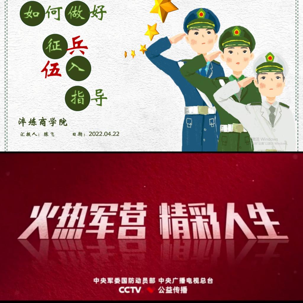 基于重庆市政府对高校征兵工作的高度重视,移通学院对征兵工作的具体实施要求,淬炼·国际商学院做到本院适龄男青年全覆盖登记,圆满完成党和国家的嘱托,在学校官网及公众号对征兵宣传工作着墨颇多。淬炼·国际商学院在“征兵宣传月”系列活动中通过海报宣传、线下组织师生观看学习“火热军营·精彩人生”等征兵宣传片,采用多方法、多维度的宣传方式,使得征兵宣传活动能够有序开展。为继续做好征兵工作,创新征兵宣传方式,加强大学生征兵入伍宣传深度和广度,我院组织召开各级辅导员关于做好征兵工作的集中理论学习。