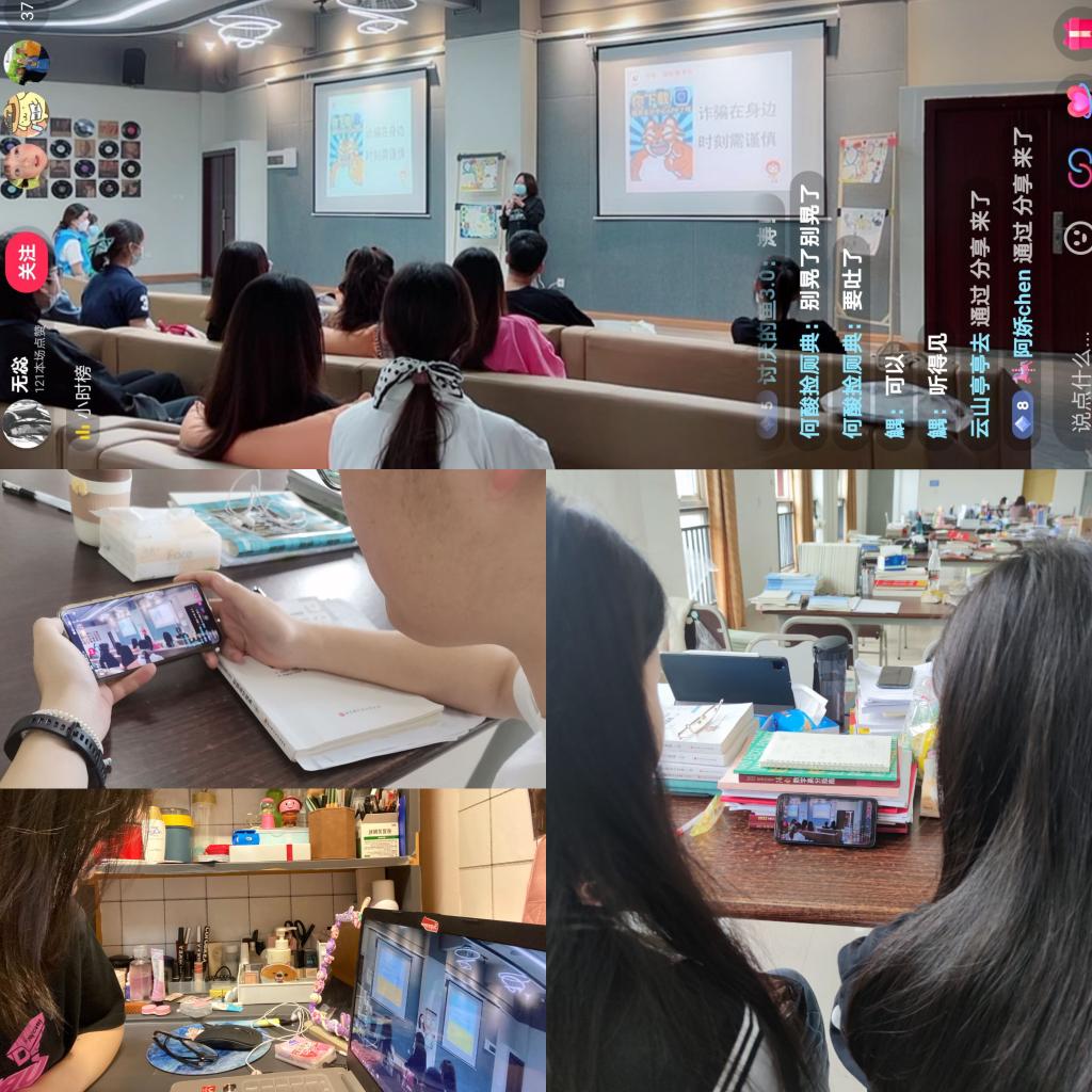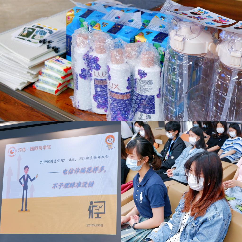 随着科学技术的不断发展,电信网络诈骗的手段层出不穷,越来越多的诈骗手段让我们防不胜防,我们需要更加谨慎对待我们的个人信息,尤其是学生群体的社会知识和经验较少,容易被诈骗分子所迷惑。为提高学生防诈意识,更好地保护自身财产安全,淬炼·国际商学院2019级财务管理1-8班、国际班携手“猫头鹰”防诈志愿服务支队宣讲团于4月25日上午采用“线上+线下”相结合的方式开展了以“电信诈骗花样多·不予理睬准没错”为主题的年级会。线下在南湖书院声影活动室开展,线上通过抖音直播进行。