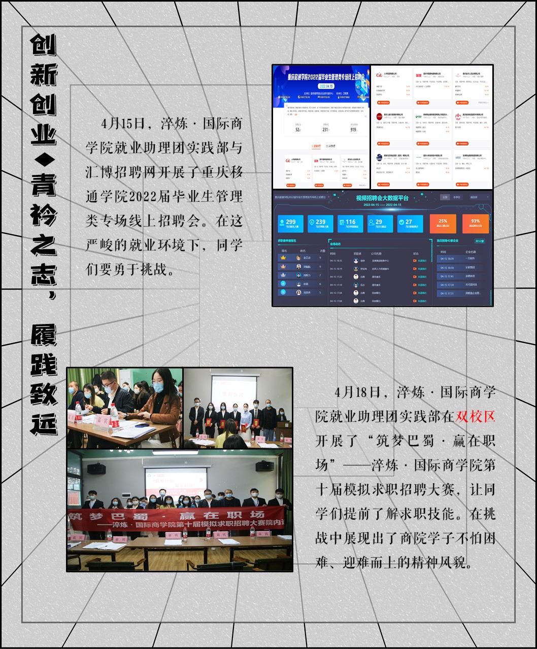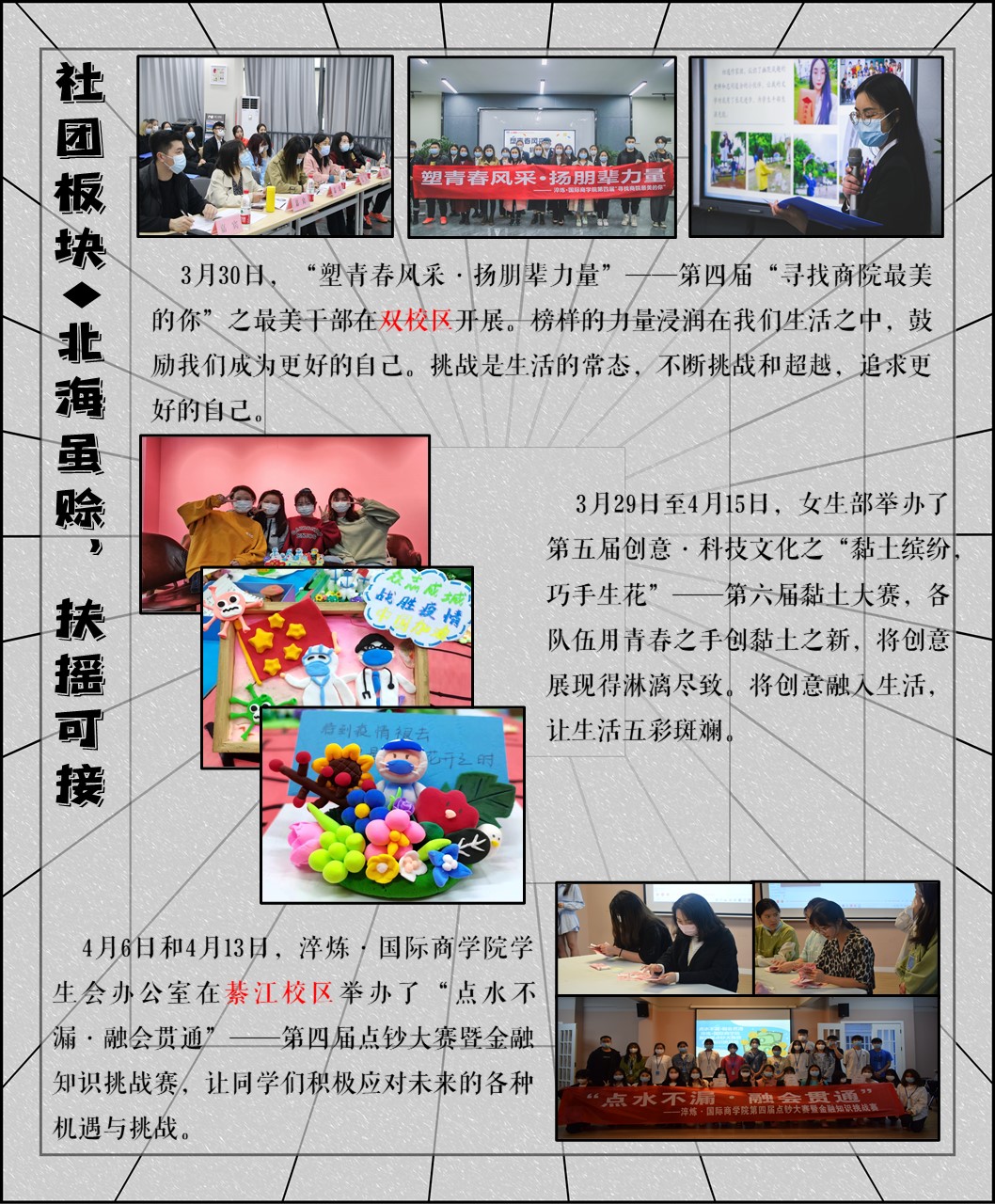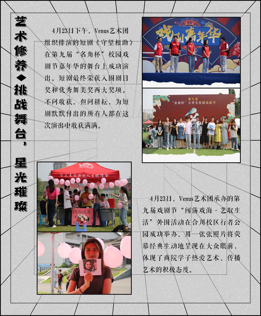 魅力四月,校园体育节是属于体育爱好者挑战的时间;校园戏剧节是属于校园“名角”挑战的时间;社团文化艺术节是属于社团达人挑战的时间……