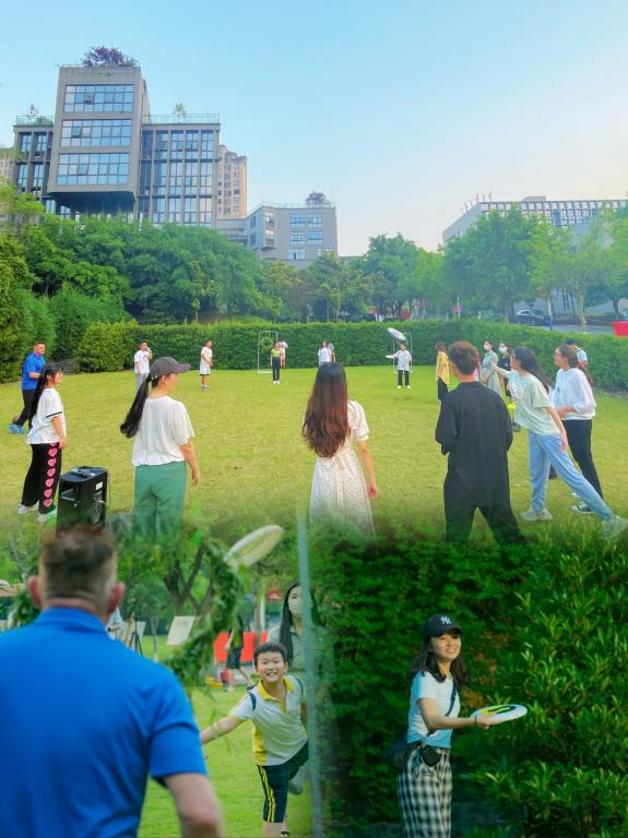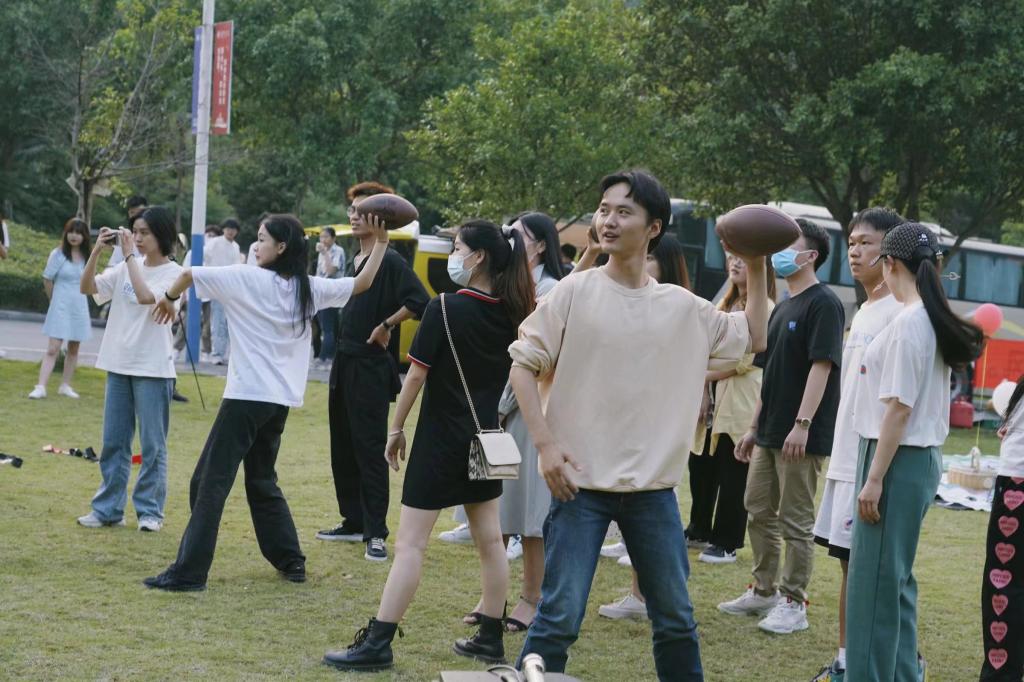 体验小众运动,展现运动多元化。在外教MIKE的指导和鱼城书院金鑫老师的主持下,同学们首次尝试橄榄球挑战赛、趣味飞盘、竞速飞镖等小众运动,相互的追逐嬉戏、打闹竞技。很快大家就相互熟络起来,尖叫欢呼阵阵传来。