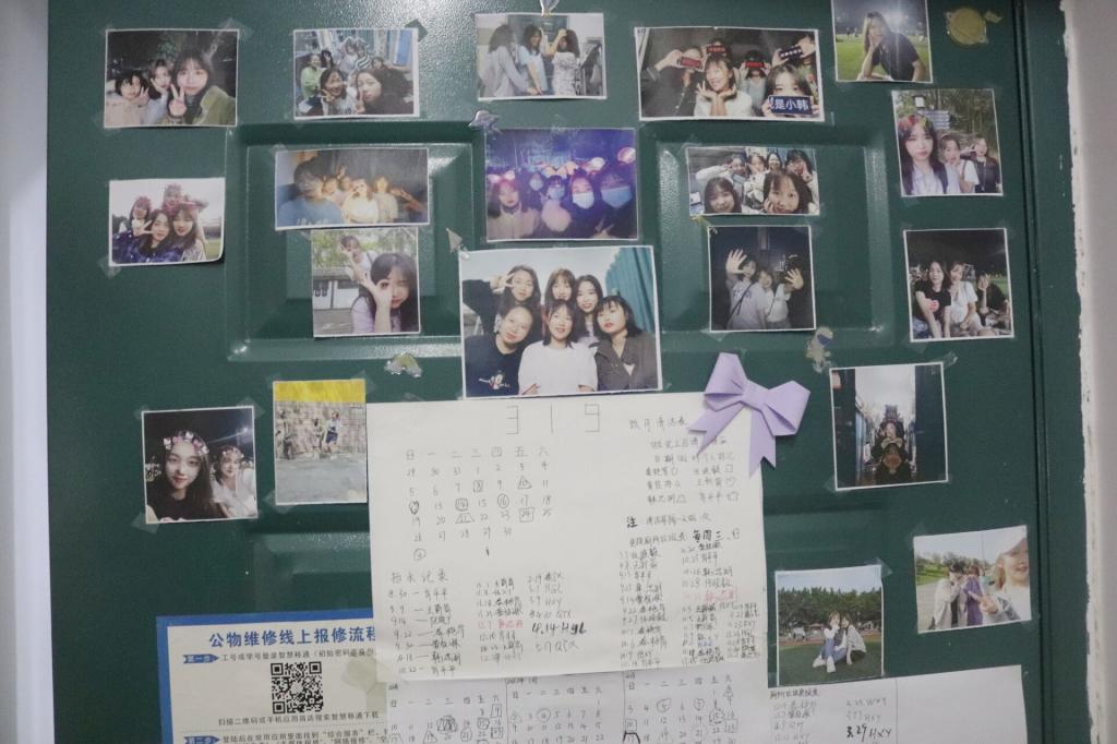 在寝室走访中发现,每个寝室的风格都是独一无二、各具特色的,其中一个获“文明寝室”的寝室,给人的第一反应就是干净、整洁,给人以宽敞明亮的感觉,并且在门背后贴了一面照片墙,全是寝室成员的合照,让人感到十分温馨,引得老师们交相称赞。其中一个寝室里,有同学因为喜爱种了非常多的多肉植物——生石花,并向大家介绍,生石花看着都差不多,但是却有上百个品种。引得老师们惊叹不已。