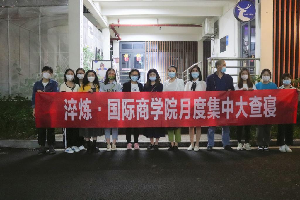为提高学生反电信诈骗和寝室安全意识,加强防诈方面的工作,认真排查宿舍潜在的安全隐患问题以及不足之处。淬炼·国际商学院权益部于2022年5月25日开展以“反诈教育进宿舍·安全教育鸣长钟”为主题的五月集中大查寝活动。本次大查寝邀请到淬炼·国际商学院副院长曾璐、学工办主任廖进以及各位辅导员老师,带领年级长及学生干部深入寝室展开本次查寝活动。