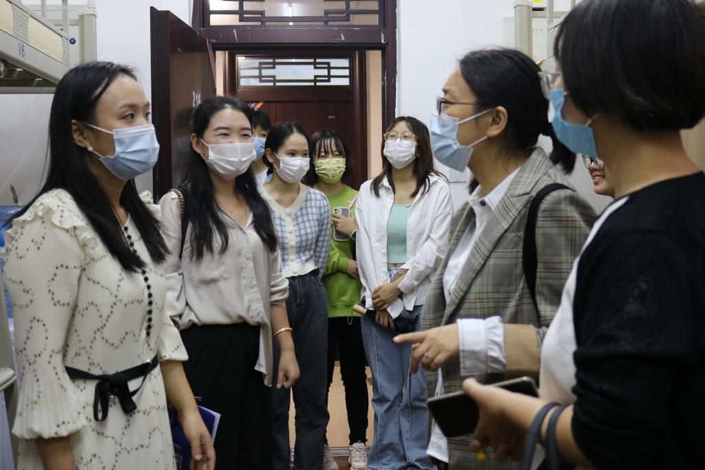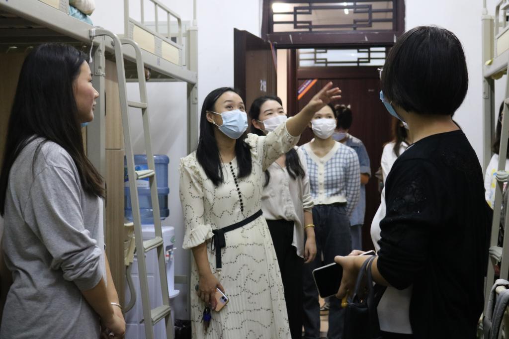 暑热退去,秋风送爽。一场秋雨,带走夏日的暑热。淬炼·国际商学院迎来了一批满怀活力的莘莘学子。为深入了解新生寝室生活情况,规范寝室生活日常管理,引导同学们营造一个文明、和谐的氛围,淬炼·国际商学院于2022年9月21日晚上19:30,开展以“迎新生·送关怀”为主题的寝室走访活动。本次活动由教学副院长曾璐、教学副院长陈晓曼、学工副院长刘薇唯,团总支书记黄新燕、学工办主任廖进、全体辅导员共同带领学院班导师及其他学生干部共同开展。