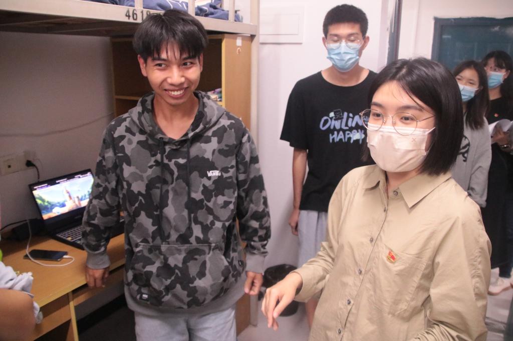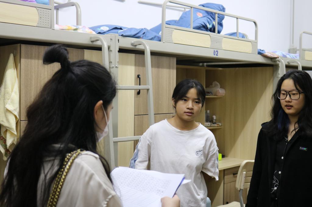 本次查寝活动主要围绕2022级新生展开,在学院领导的的带领下,分成3支队伍同时进行。学院领导进入寝室后,向新生们了解宿舍生活情况,询问同学们日常生活中遇到的问题并给予建议,同时对寝室卫生进行检查。辅导员梅欢老师提醒同学们一定要注意寝室用电安全,按时归寝,要注意保持寝室卫生的整洁。新生同学们面对学院领导、辅导员老师们亲切的问候,细心的关怀,感受到家的温暖,逐渐摆脱紧张的情绪,与老师们积极进行沟通交流,畅谈着在步入大学以来面对的新鲜事物,欢声笑语,其乐融融。