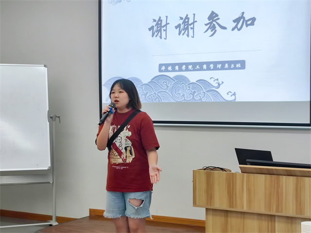 团支书旷云娜较自己的学习心得进行发言,她表示,同学们应当勇于克服内心的屏障,敢于挑战自我。
