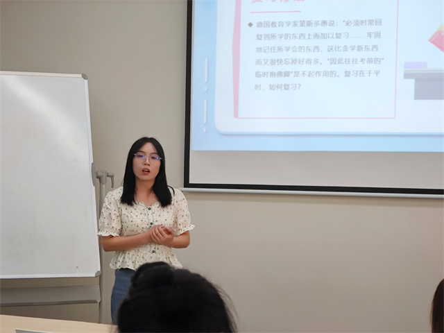 学习委员陶彩霞对学习方法及经验总结进行PPT展示,提醒同学们在丰富的活动中也应端正学习态度,树立学习目标,合理安排好各科的学习时间并注意生活中的时间管理。