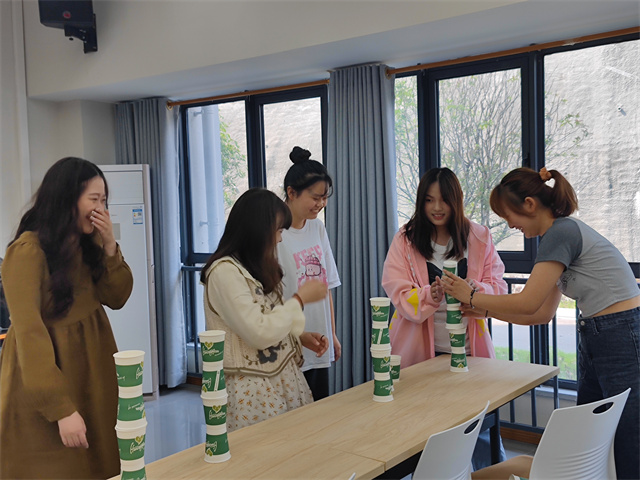击鼓传花,鼓声潺潺,谁是幸运儿?纸杯交叠,层层进阶,谁是“建筑师”?游戏期间,现场气氛火热,同学们分为两组进行友好切磋,在多轮较量中更加熟悉彼此,不论胜负与否,都收获了精美的奖品,也为彼此的友谊增温。