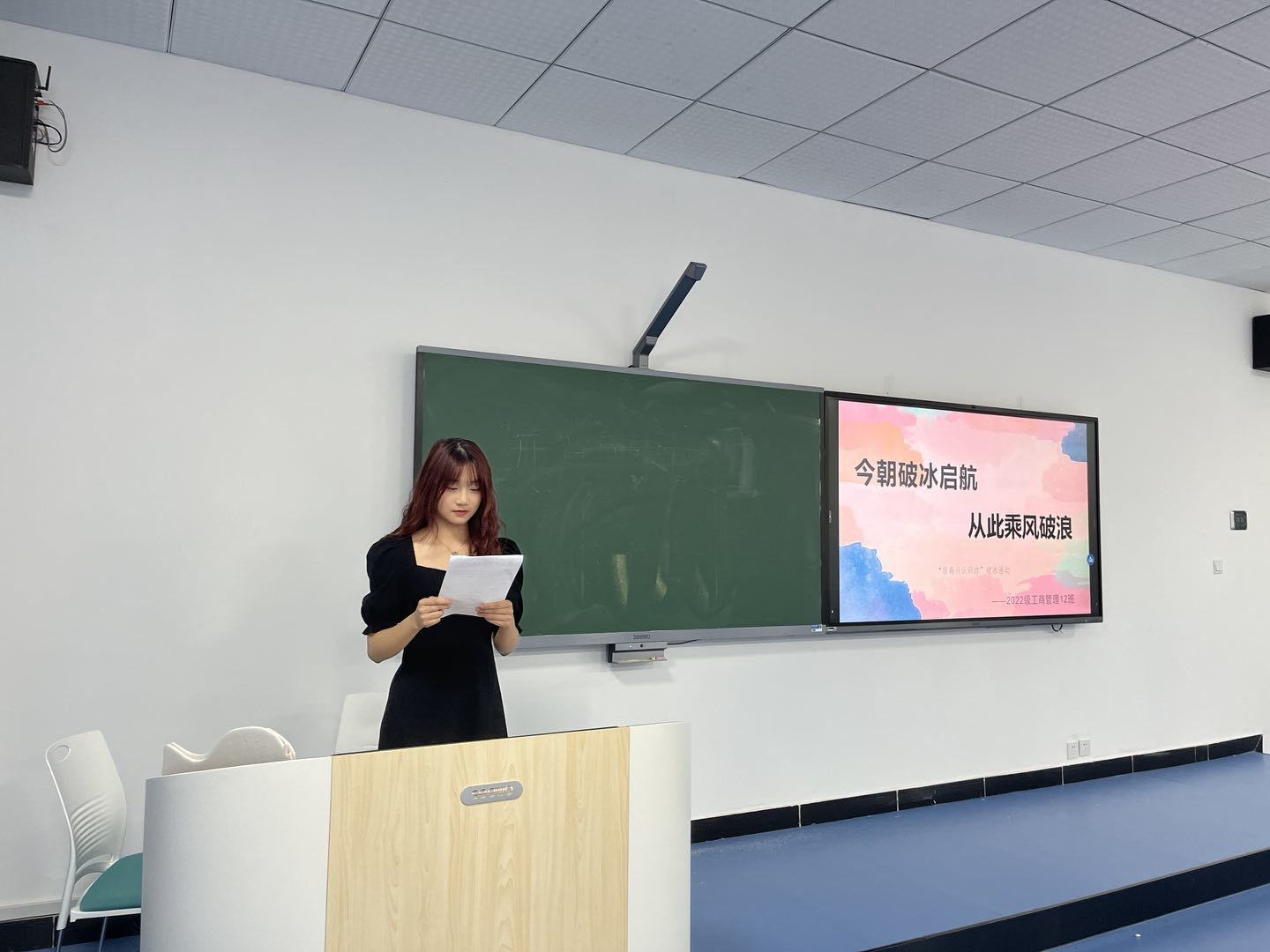 为了让同学们在冲破了书本的重压和高考的历练后,带着兴奋和喜悦的心情步入新的学习和生活中去积极探索规划自己的人生。同时进一步增强班级同学之间的凝聚力,促进同学们相互了解。2022级工商管理类12班于2022年9月29号下午3点整,在第五教学楼5201智慧教室开展“今朝破冰启航·从此乘风破浪”的主题班会。