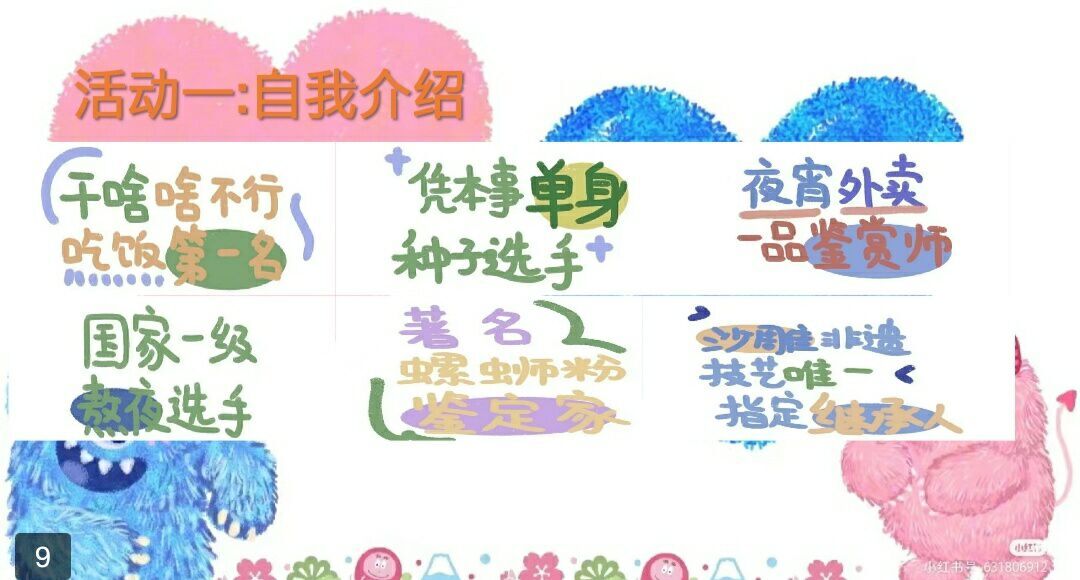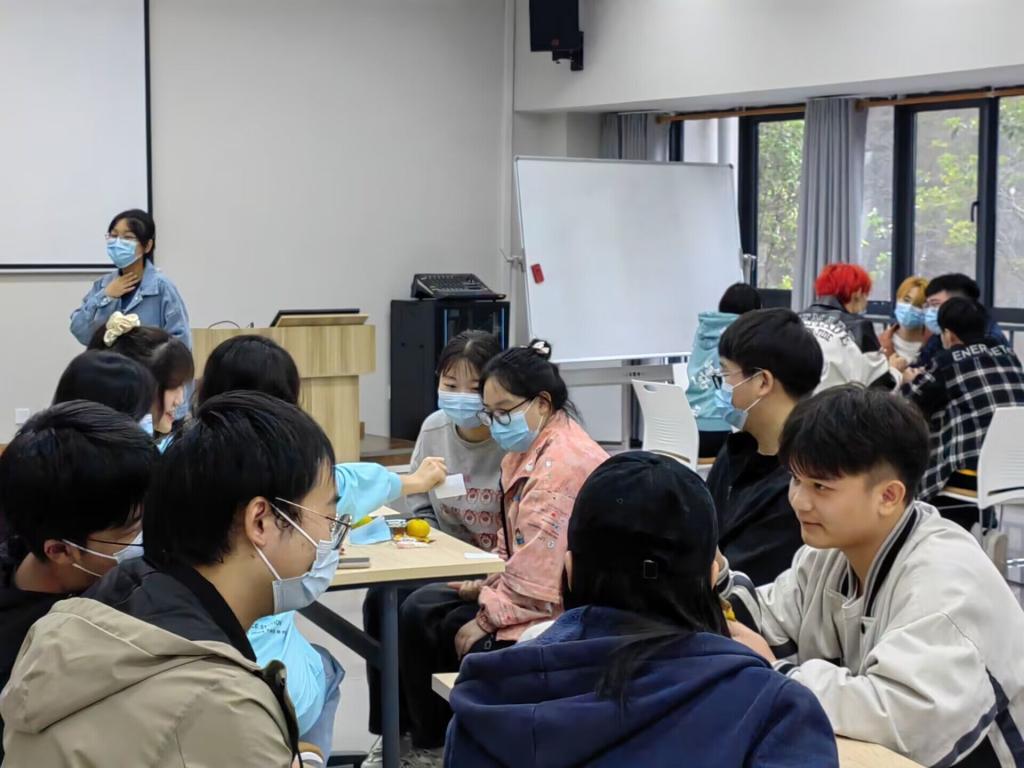 融入大学生活的第一步是形成自己的“名片”,自我介绍环节里,每个同学都积极展示着自己,“夜宵外卖一品鉴赏师”、“国家一级熬夜选手”、“凭本事单身种子选手”等等称号层出不穷,欢乐在会场内迅速蔓延,同学们也在各式各样的特点标语中找到了志同道合的伙伴。