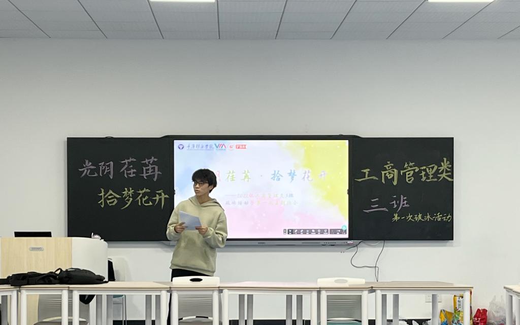 秋风送爽、金秋梦圆,为了增加班级同学的集体荣誉感、让班级同学更快找到归属感,2022年10月6日18:00 2022级工商管理类3班在5204开展了以“光阴荏苒·拾梦花开”为主题的班会暨破冰活动。