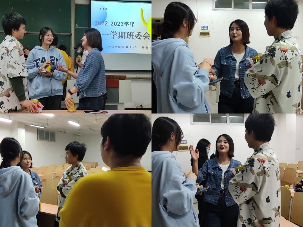 最后通过互动交流环节,以座谈会的形式,让班委们和辅导员之间交流更加轻松愉快。辅导员感受到了班委们对班级的热爱,也对各班级情况有了更进一步的了解。大家纷纷表示将齐心协力完成学校工作,共同为班级荣誉服务,形成具有班级特色的年级集体荣誉感。