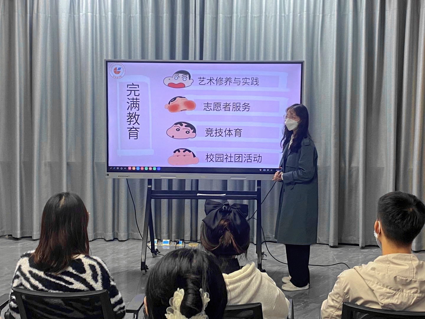 主持人肖雅心通过校园社团活动、志愿者服务、艺术修养与实践、竞技体育四个板块向同学们介绍完满教育,以“班级合照比赛、‘新生杯’辩论赛”等是属于校园社团活动板块,“校园十佳歌手大赛、原创歌曲大赛”等是属于艺术修养与实践版块为例帮助同学们更好的理解完满教育。理解是行动的基石,而行动需要良好的个人习惯。“以学为先,自我约束;睡前复盘省思,别在低效率娱乐里消遣;避免患得患失,保持理性思考”是班长肖雅心对自己的习惯约束。“吾日三省吾身:为人谋而不忠乎?与朋友交而不信乎?传不习乎?”是圣人的榜样力量也是同学们的时常自我反省。个人成就集体,“击鼓传花”游戏让同学们快速地说出自己要如何养成良好的习惯,班级凝聚力和同学们的团结意识得到在游戏中不断增强,为打造更好的班集体发挥个人力量。