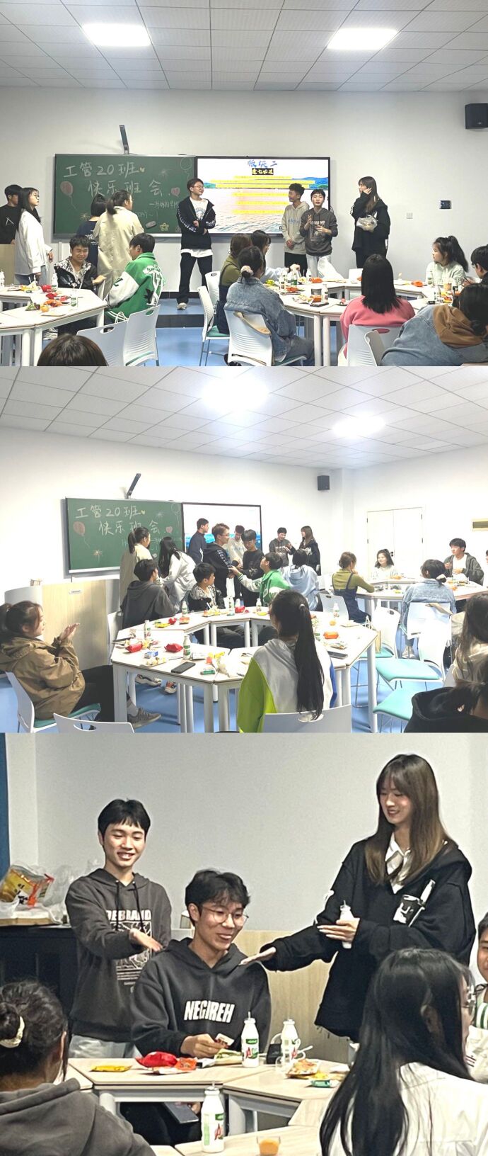 经过规则制定的严肃环节,班会来到了大家最期待的游戏环节,本次活动一共设有三个游戏,分别是击鼓传花、逢七必过和真心话大冒险。以“惩罚”之名让输了的“幸运儿”吃柠檬、表演才艺,以此来更好地展示自己。游戏过程中同学们活跃度极高,参与感极强。通过游戏来互相了解,使得同学们对彼此的印象更深,对于往后彼此的相处与交流和团结班级的创建更加有利。