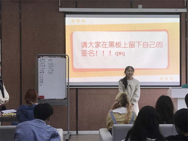 简单的介绍之后,正式进入破冰活动环节,破冰是为了让大家打破陌生感,通过游戏的方式让大家变得更加活跃与了解。同学们进入“名字接龙”小游戏,既考验同学们的记忆力,同时也让同学们再次熟悉彼此,让同学们在游戏中实现相互帮助,相互合作,提高效率,培养人际交往能力。