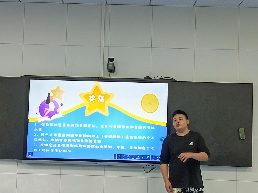 古人云:“无规矩,不成方圆”。为规范班级建设,营造积极向上的班级氛围,在第一次班会这个特别的时间,班长高文山向同学们解读了关于学习、班级活动、奖惩三个方面的班级建设制度,带动班级同学共同努力,建设优良的班级学风,营造浓厚的学习氛围,增强班级凝聚力,为班级的未来奋斗。