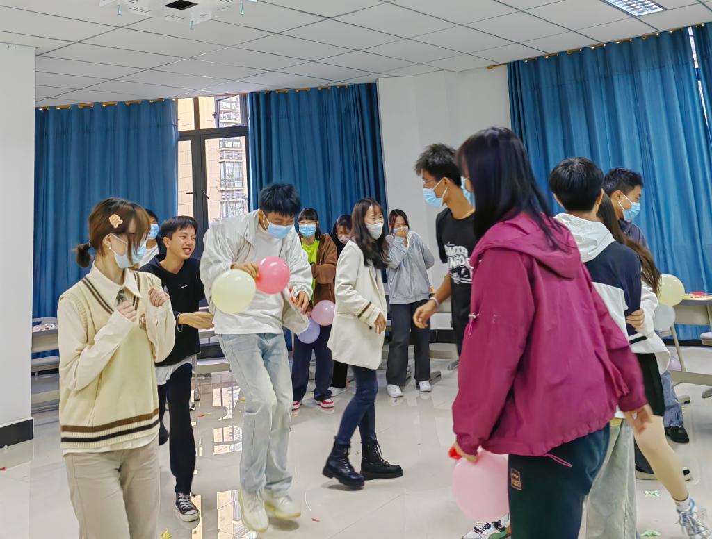 简单字句,满怀热忱。同学们在手中的卡片上写下自己的短期目标,并约定时间进行检验。在这里,一张张卡片的意义得到升华,它代表着所有同学对未来的希望和对自我的警醒。目标制定告一段落,接下来是游戏环节。首先是“击鼓传花”,随着音乐的律动,同学们开启接力,也在此传递了友谊。接下来的“目标对对碰”将气氛拉到最高,小组同学一起合作将对手组的气球消灭,大家一起盯准目标,朝着一个方向。相信未来四年,同学们亦如此,携手同行,共同努力。