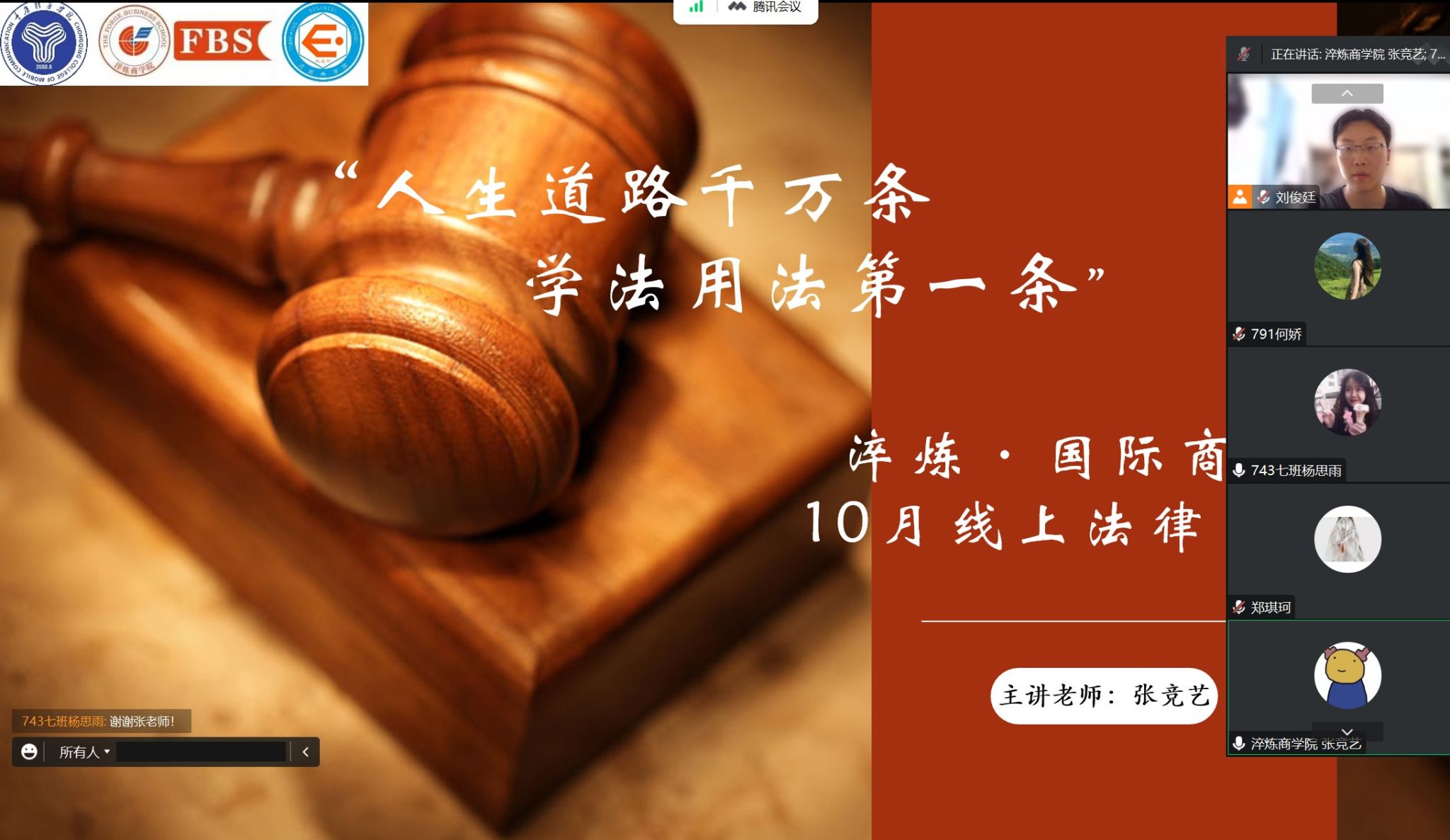 在现代法治社会的生活中,与法律打交道必不可少。而大学校园作为大学生迈向社会的桥梁、适应社会的缓冲带,是大学生学习法律的良好平台。法律宣传教育也是高校的重要工作之一。为提高我院学生对于法律熟知度、掌握基础法律,推动落实法律宣传教育,淬炼·国际商学院权益部于2022年10月12日开展主题为“人生道路千万条 学法用法第一条”法律宣讲会,本次主讲人为淬炼·国际商学院安全稳定板块及权益部指导老师张竞艺老师。
