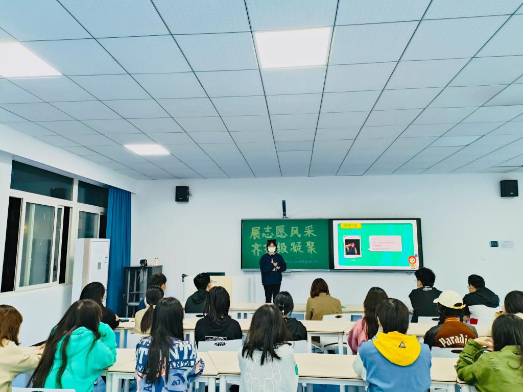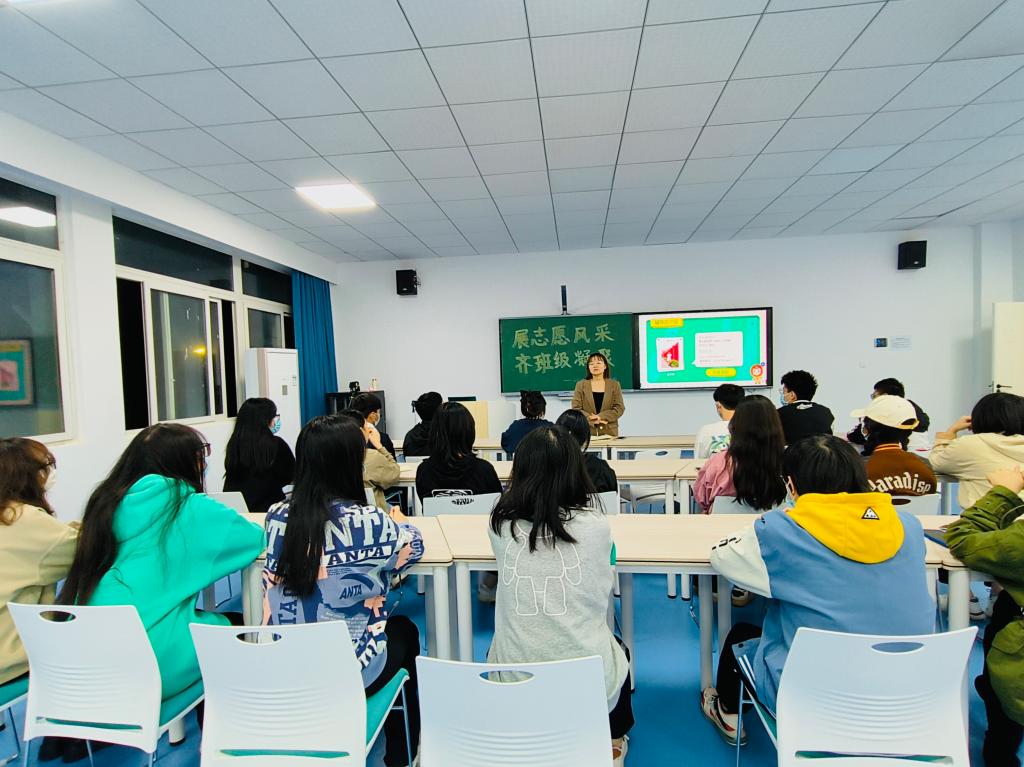 窗外日光弹指过,席间花影坐前移。班会临近尾声,班导师何思颖期盼同学们用努力浇灌生活,在实践中发挥自己的潜能,在接下来的日子里,将会继续陪伴我们,共同成长。辅导员蒋开蓉老师发表寄语希望同学们既要仰望星空也要脚踏实际,学会独立也要懂得合作,积极成为志愿者的一份子并凝聚班级力量发光发热,牢记使命,不负韶华!