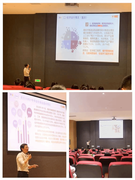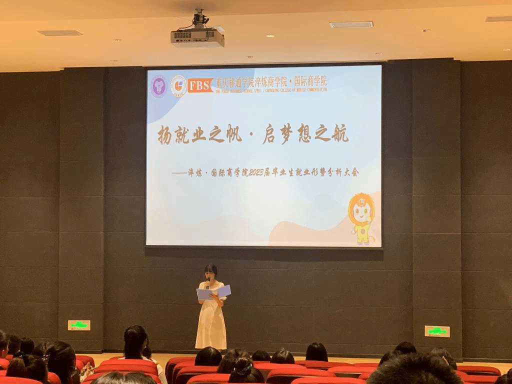 “这是最好的时代,也是最坏的时代!”为了全面落实保障毕业生就业工作,缓解即将面临就业的压力,让2023届毕业生正确的认识到当前就业形势,对未来的就业目标有更加明确的认知。淬炼·国际商学院于10月19日下午14:45在六度空间105℃学术报告厅举办2023届毕业生就业形势分析大会。本次活动有幸邀请到重庆移通学院校长助理、淬炼·国际商学院院长张平、学工办副院长刘薇唯、就业创业办公室主任杨伦芳、大四辅导员老师们以及大四学生代表。