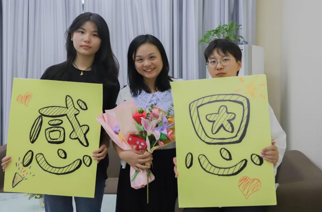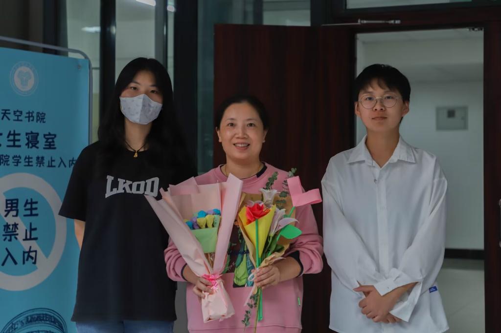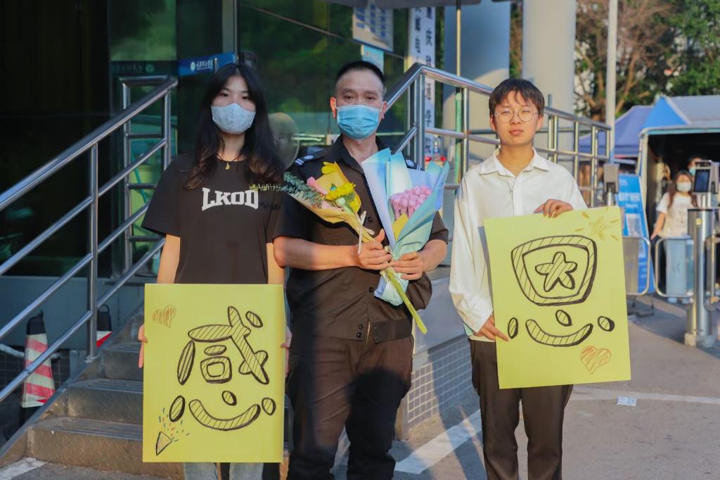 随后这些花束由工作人员及小组代表送与了身边的基层劳动者。大家找到宿管阿姨、保安大叔、老师等,去道一声谢谢叔叔阿姨,说一句辛苦了老师,都是同学们最真挚的话语。相信同学们一定能够在未来心怀感恩,努力成长,回报他人。