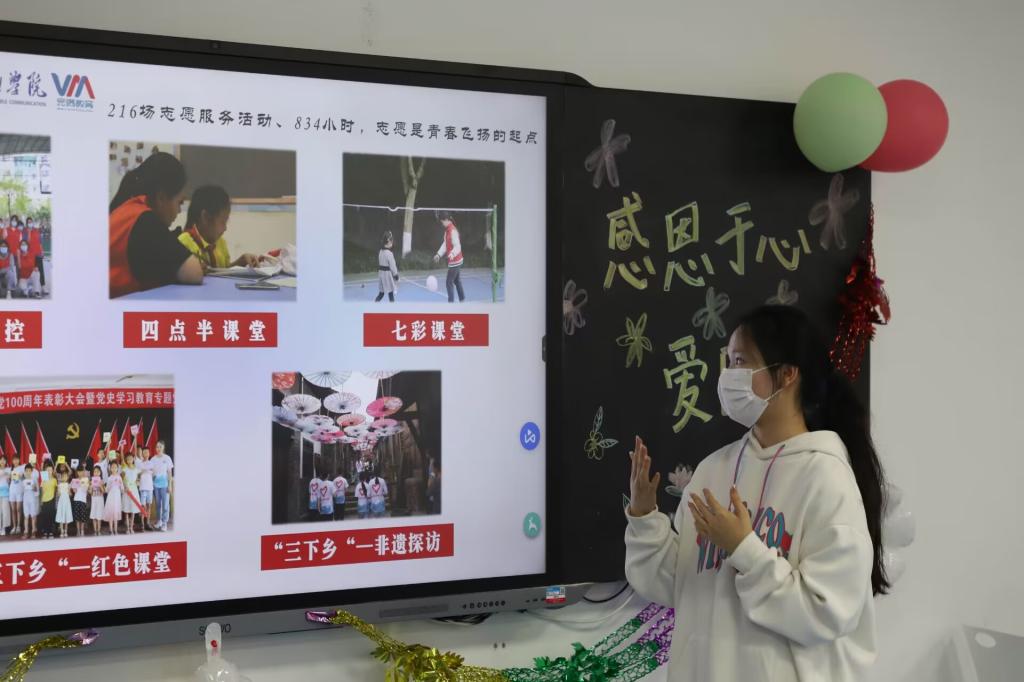 笃行不怠,朝乾夕惕,自有功不唐捐。青年若能坚持坚定理想信念,天道酬勤,定能有一番耕耘。特邀嘉宾移通之星张鑫学姐为大家分享了她的志愿服务经历,以自身献身于志愿服务的经历为例,就“遇见”“接力”“蜕变”三个主题为各位同学讲解了她在坚持志愿服务中得到的成长和收获。后续在面对小记者采访中,张鑫学姐谈到,面对疫情,志愿者们功不可没。所以不论是做志愿还是其他,都不可因为枯燥劳累而放弃,从一而终,终有所成。相信不管是在场的同学还是线上观看的小伙伴,都一定能够明白学姐的心意,于实际中践行。