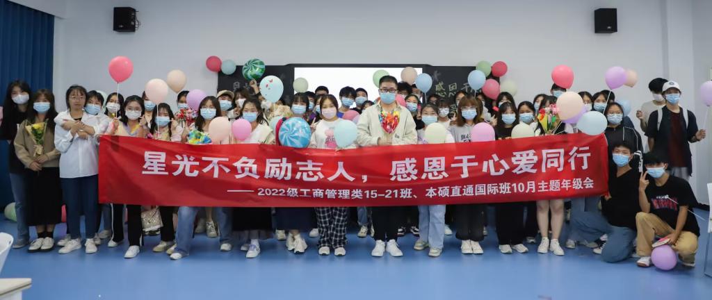 何为一名合格青年?当有志而行不辍,且常思恩,胸怀爱意,马踏白雪,逐风赶浪,不负时代。为了培养青年优秀品质,怀抱梦想,心揣爱心,响应二十大习近平总书记号召,做新时代的好青年。淬炼•国际商学院2022级工商管理类15-21班、本硕直通国际班于2022年10月21日14:00在5204举行以“星光不负励志人,感恩于心爱同行”为主题的年级会。